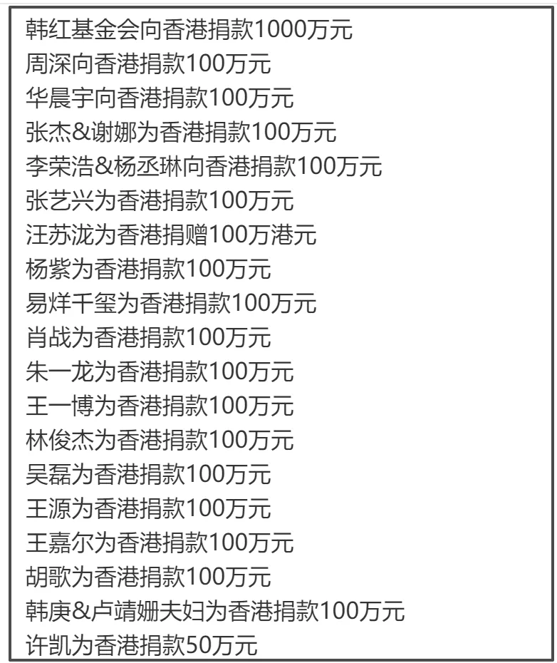 香港大火引发外界持续关注,娱乐圈众多明星纷纷捐款,内地明星更是占据了大头,希望守望相助,共渡时艰。