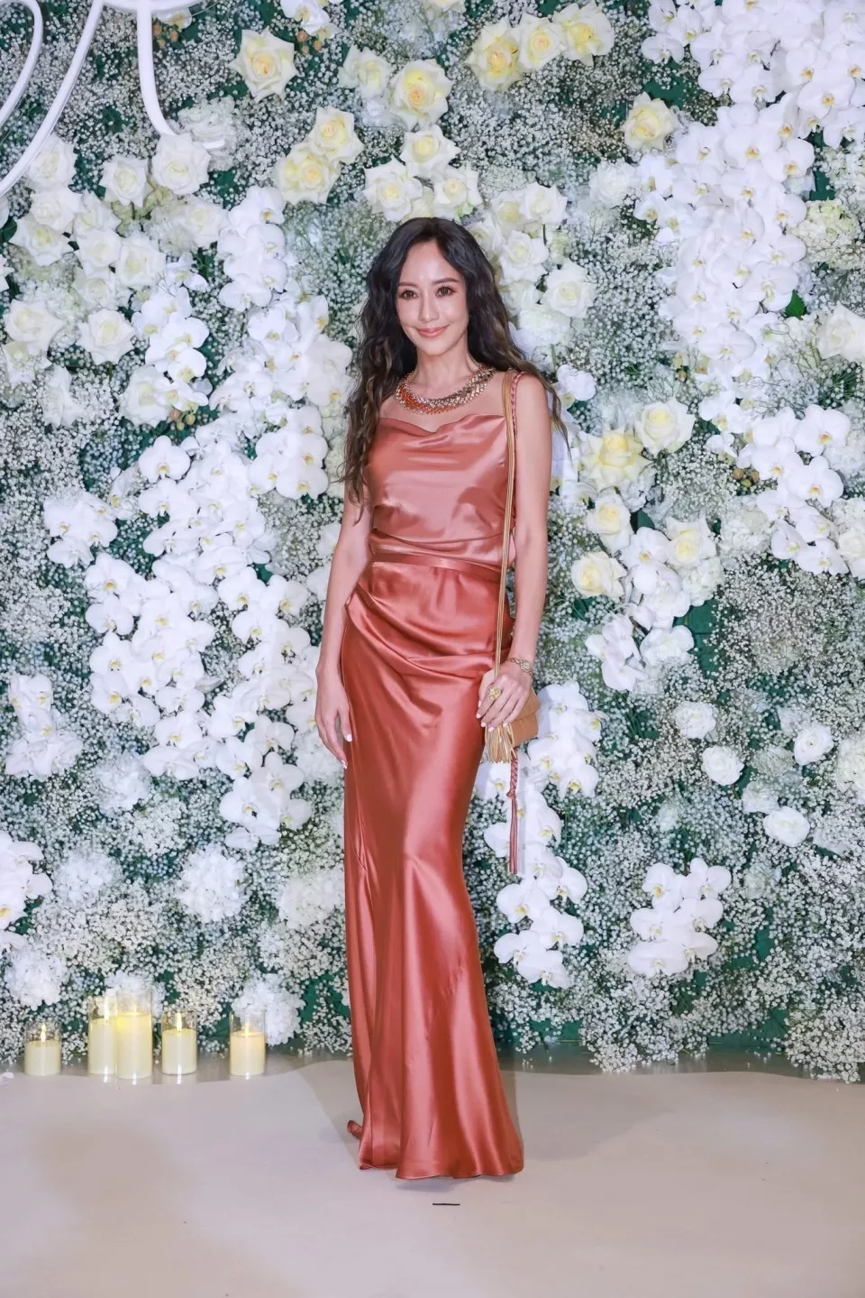 关颖一条丝绸长裙尽显高挑好身材,贵气名媛气质拉满,波浪卷发搭配烟熏眼妆,甜美中还有几分飒爽。