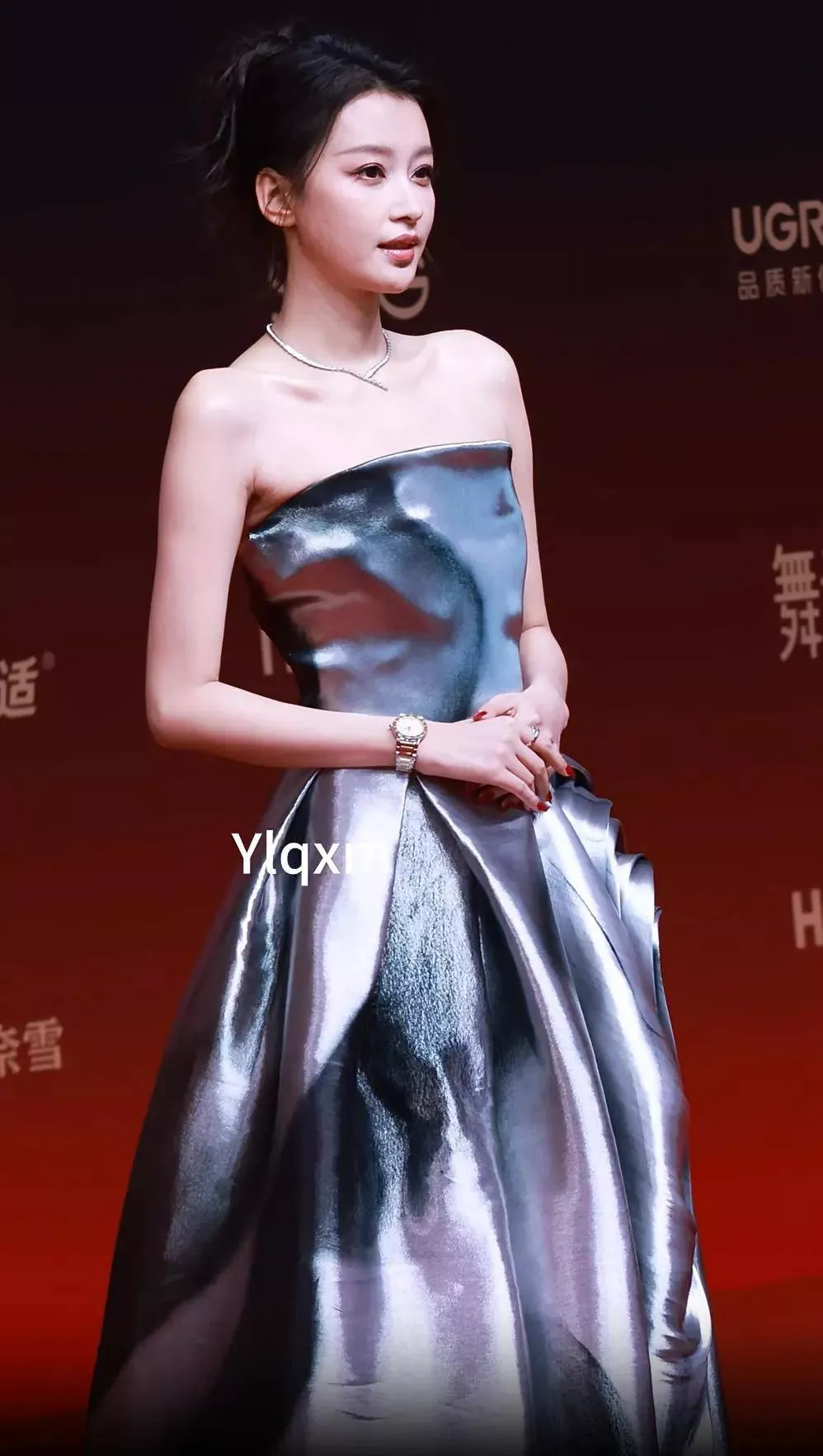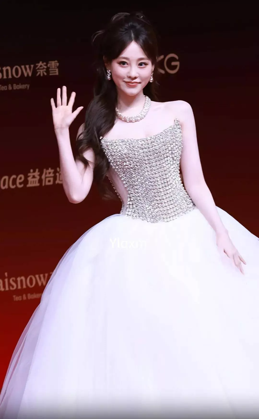 宋轶在媒体镜头下有种白到发光的感觉,再加上身材纤瘦,感觉完全不需要修图就有精修图的感觉了。不过这次的造型说不上很好看,抛开发型不谈,这裙子有点像交谊舞比赛的服装。