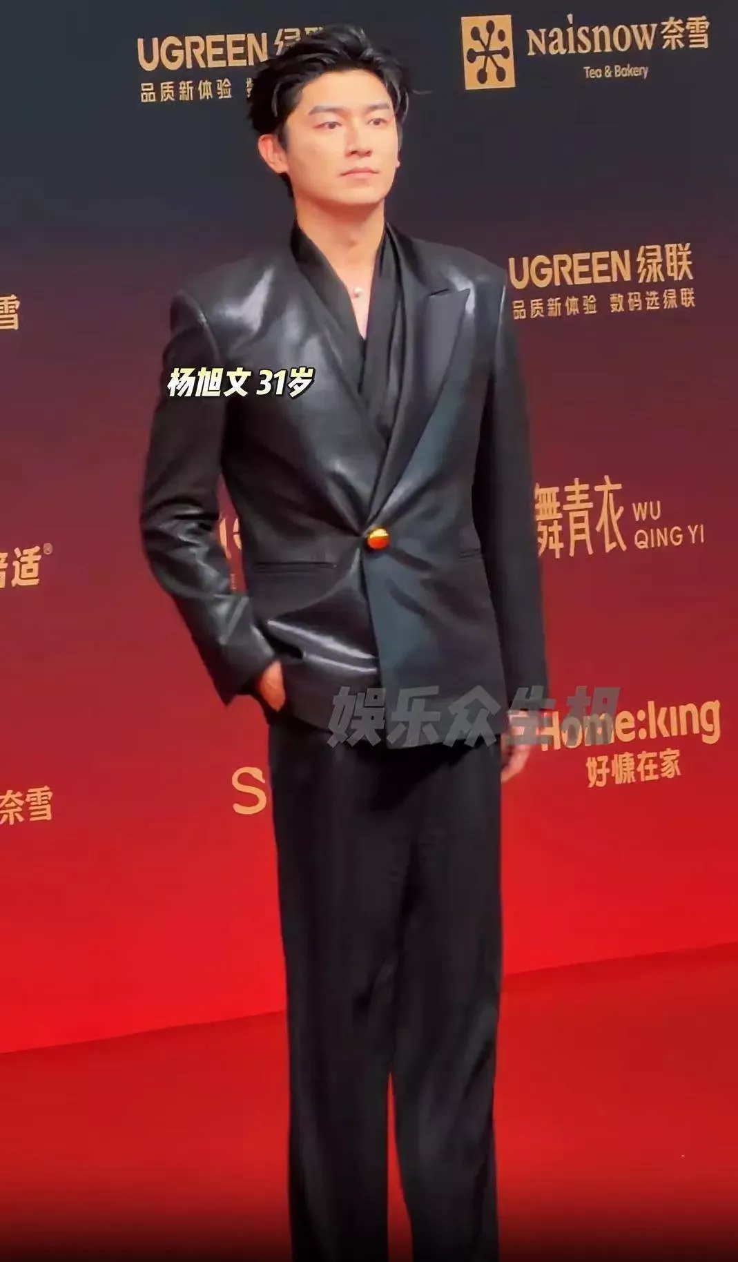 杨旭文的皮外套看着也挺保暖,看来秋冬的红毯还是对男明星友好一点,至少可以多穿点。