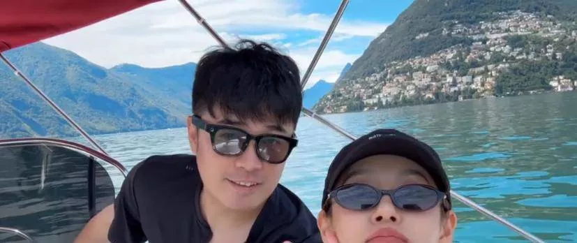 視頻開場便是日內瓦湖的醉人風光,晴空萬里下湖水翠綠如翡翠。陳赫身著休閑黑T恤,張子萱依偎在他肩頭,兩人面貼面綻放笑顏,濃情蜜意幾乎要滿溢而出。
