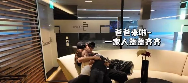 在酒店休憩時,陳赫慵懶地靠在米白色沙發上,張子萱歡快地撲進他懷裡,兩人相擁翻滾笑作一團。畫面標註著\”爸爸來啦~全家團聚\”的字樣,這哪裡是普通旅行,分明是幸福生活的真情流露。