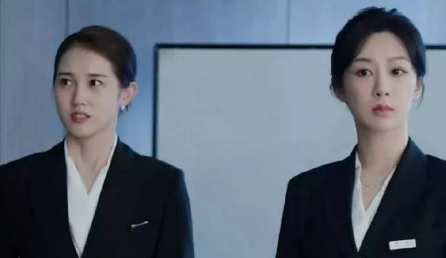 跟杨紫在《承欢记》同框时更有意思,俩人都穿黑西装扎丸子头,杨紫是顶配待遇的女主,她就演个叫 “莉莉”