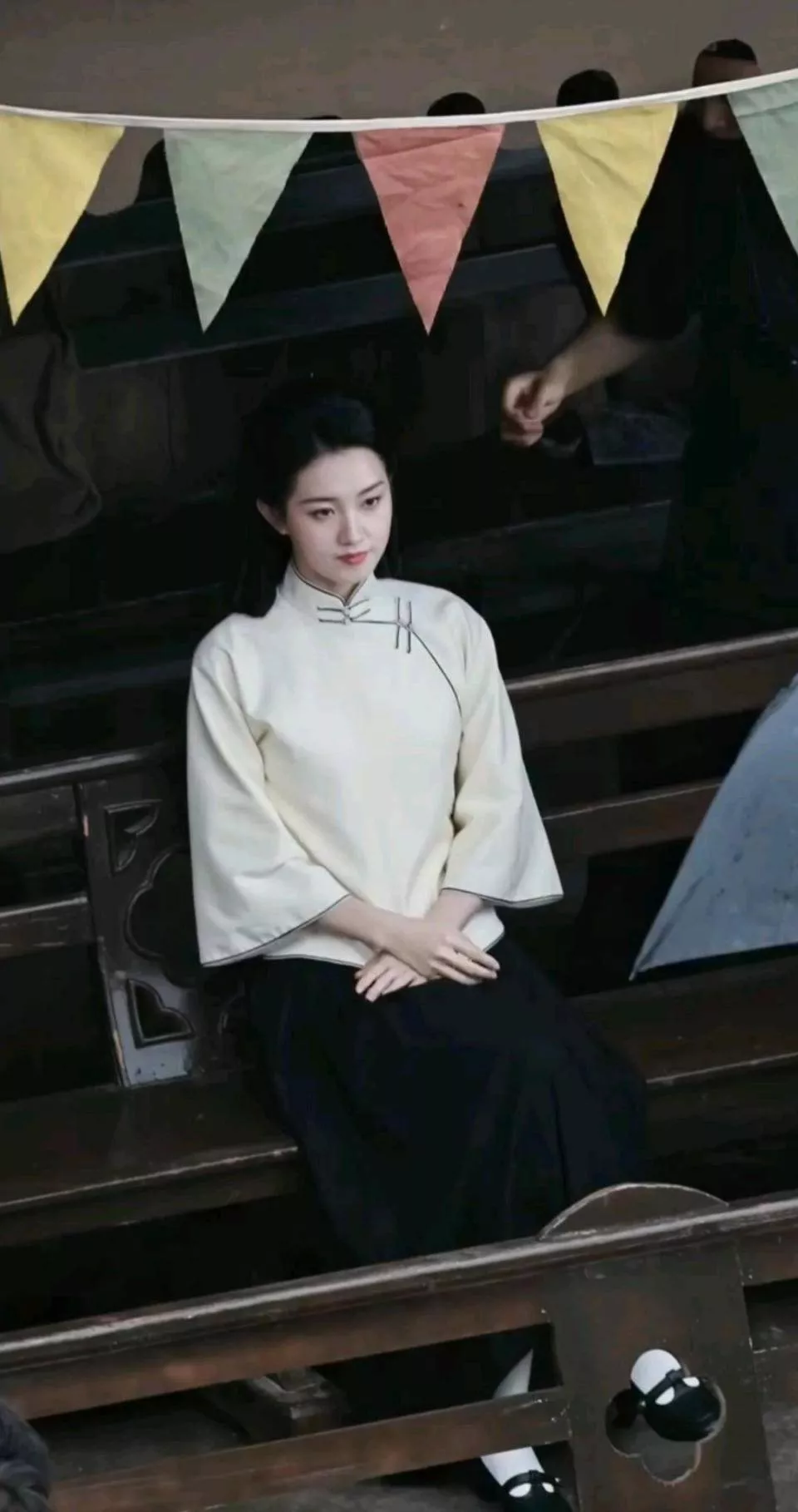 偏偏她肩颈线条像天鹅,下颌线比女主还清晰,站那儿气场一点没输,可惜镜头只给了0.5秒的侧影。