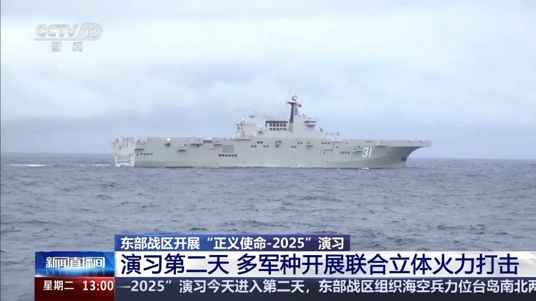 中共解放军东部战区15时30分左右在发布消息称,在台湾以东海域开展立体投送、精兵破袭、夺控要港等科目演练。(图/取自央视新闻)