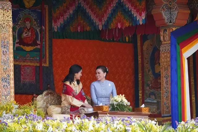 在完成当天的仪式后,两对王室夫妇肩并肩地走出了宫殿,虽然现年73岁的泰王拉玛十世玛哈·哇集拉隆功和不丹国王纳姆耶尔保持着一定的距离,但苏提达跟吉增·佩玛就像是许久未见的好闺蜜似的,手拉着手说着悄悄话。