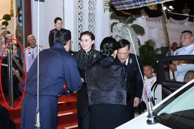 在宾主双方告别时,一个有些扎眼的身影出现了,那就是贵妃诗妮娜。在当今时代,还有人拥有“贵妃”这样的头衔,也是够罕有的了,但泰国王室就是如此的不拘一格。