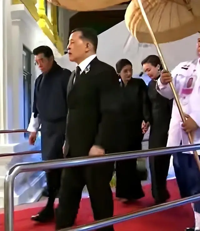 值得注意的是,在王太后去世后的一段时间里,身为泰国王后的苏提达是必须穿着黑色服装的,配饰也需要尽可能地减少。