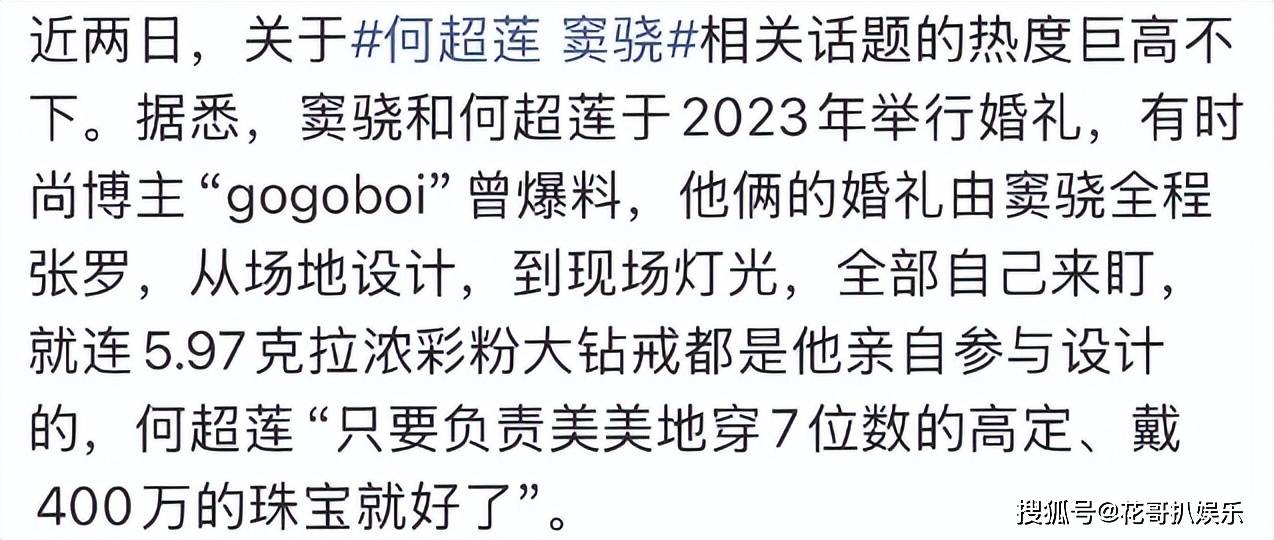 首先是窦骁这边,找营销号爆料,说他对这段感情有多么用心,当初结婚的时候,婚礼都是他自己掏的腰包,何超莲没有花一分钱,婚礼全程也是自己设计,所有细节都是他亲自监督的,何超莲什么都不用做,美美当新娘就可以了。婚后衣食住行房屋装修也是窦骁出钱,甚至在何超莲名下的房子也在窦骁出资下翻修了一遍。