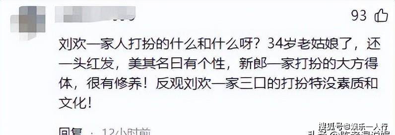有人说,刘欢一家人到底在闹什么别扭?34岁的姑娘还染着红头发,反倒显得不太像样……比起他们,刘欢一家三口的打扮简直没有素养,也缺乏文化底蕴!我自己不觉得红发有啥好看。最让我讨厌的还是红头发,太吓人了,一点都不好看。