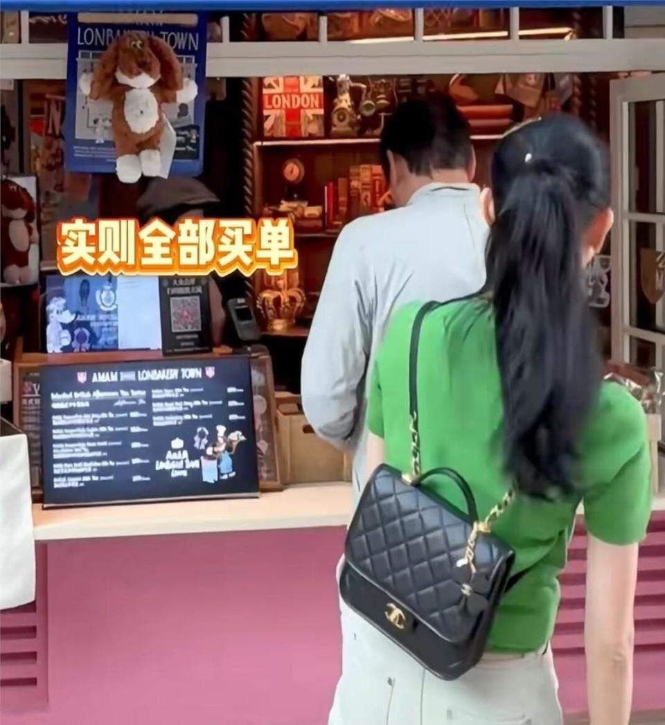 身后39岁的妻子张梦瑾绿衣白裤,香奈儿双肩包甩在肩头,妆容精致得像刚毕业的姑娘。