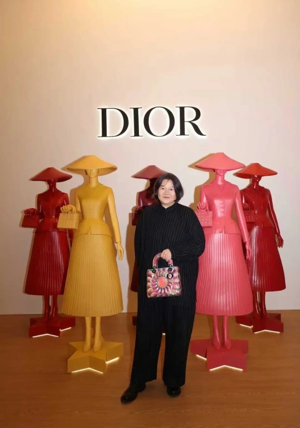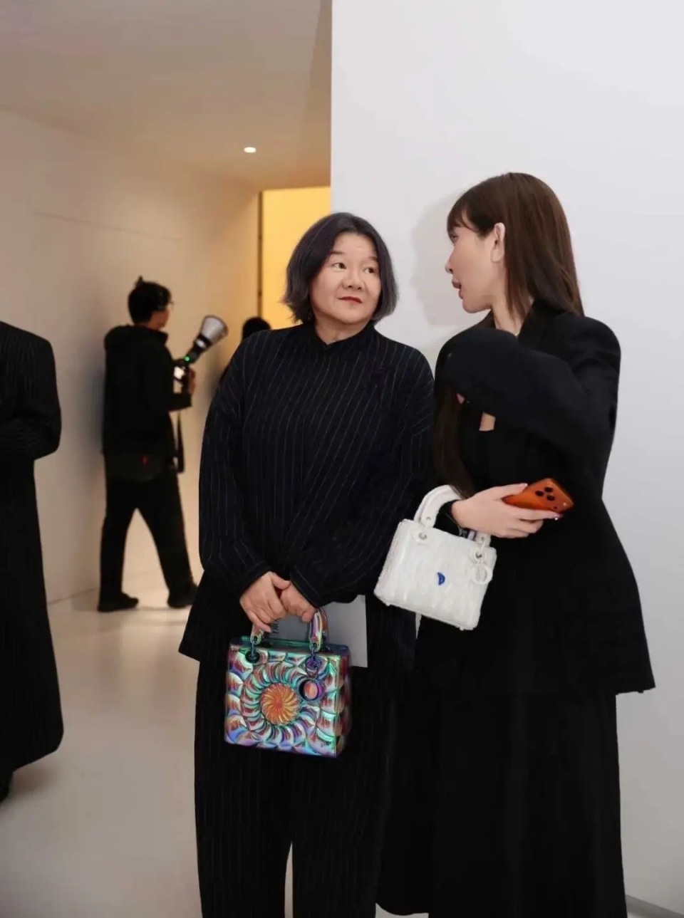 洪晃还和现场的工作人员合影了,她175的个子、非常有气场。手里拎着爱马仕包包、就像拎着买菜篮子一样的松弛。