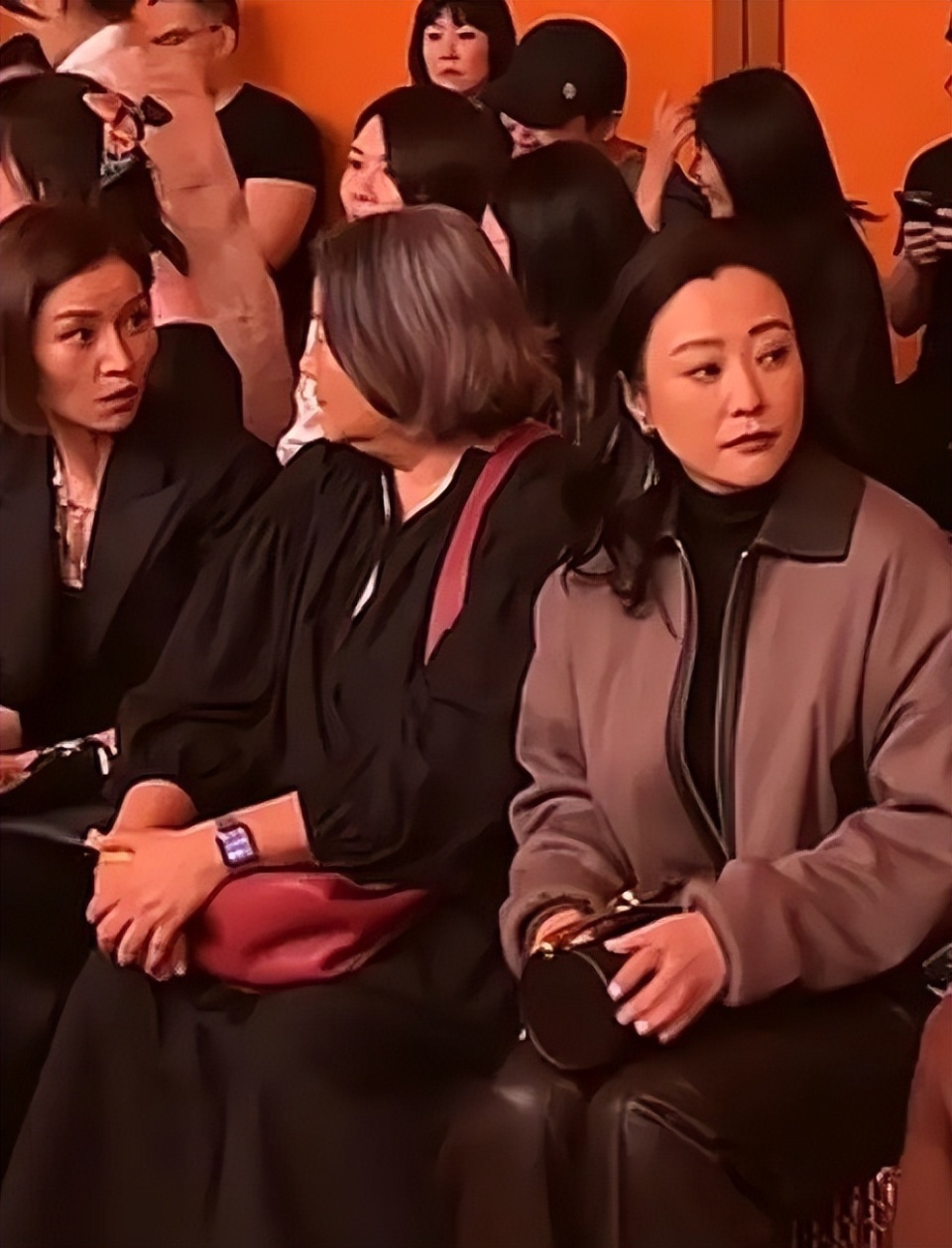 那时候洪晃和郝蕾坐在一起,她的身型明显比郝蕾胖了2圈,双下巴也非常明显,一身宽松的黑衣显得油腻。