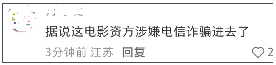 此外,还有消息称该影片跟一起电诈案件有关,称影片的某位投资商涉及电诈案,因此波及到影片。该爆料若属实,只能说片方及演员倒大霉。