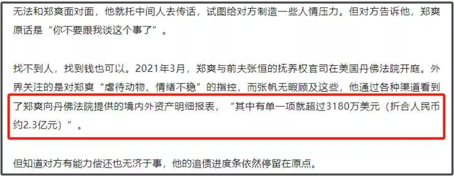 但從鄭爽工作室的動態和網友偶遇的情況來看,鄭爽的生活還是比較不錯的,起碼還有資金創業,製作AI短劇,運營賬號,此前債主還曾爆料鄭爽在境外有2.3億的資產,看來當年是真沒少賺吶,但一切都隨著鄭爽塌房成為泡影。