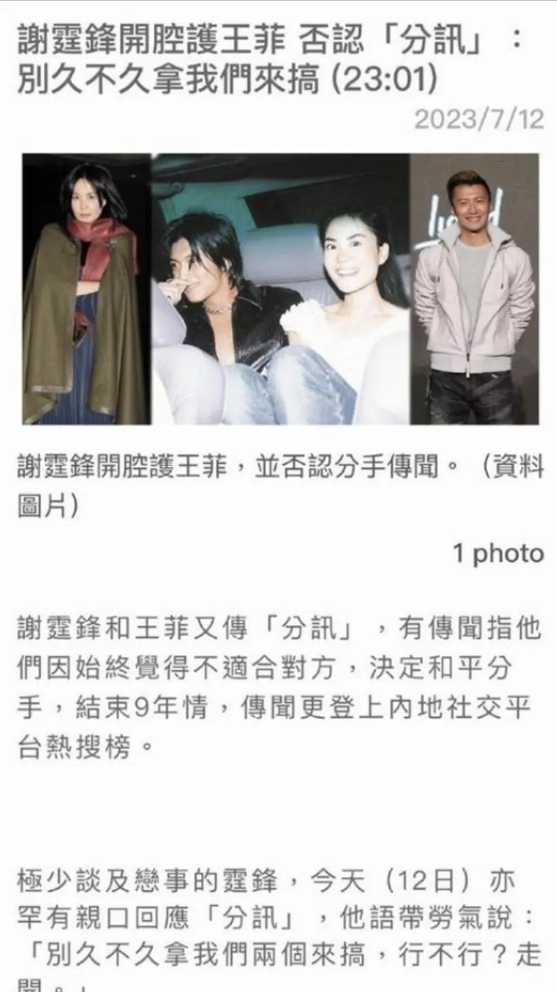 虽然感情很稳定,但是这些年他们也没少被传分手,不过几乎每次谢霆锋都会出来辟谣,否认分手传言,说他和王菲的感情非常好。