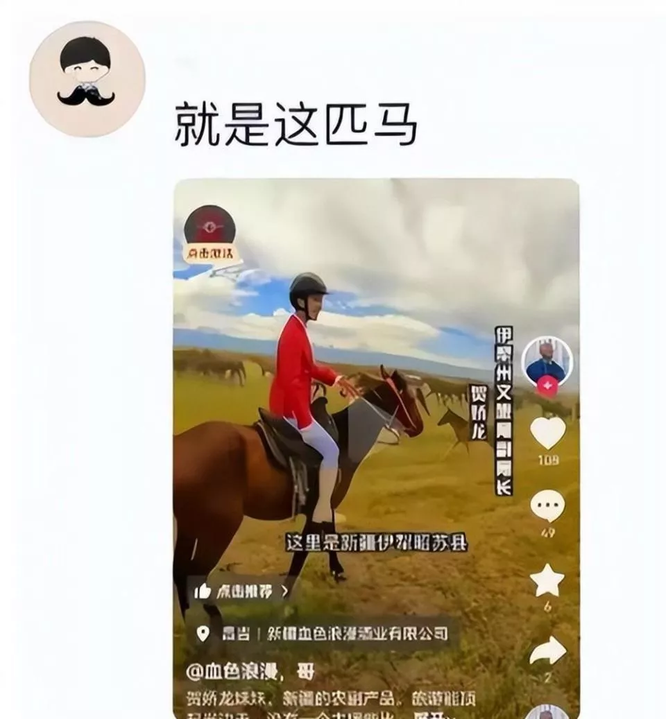 她的抖音名字也从“贺县长说昭苏”变成“贺局长说伊犁”,最后定格在“贺娇龙品味新疆”。 变的是职务和平台,不变的是那股子拼劲。