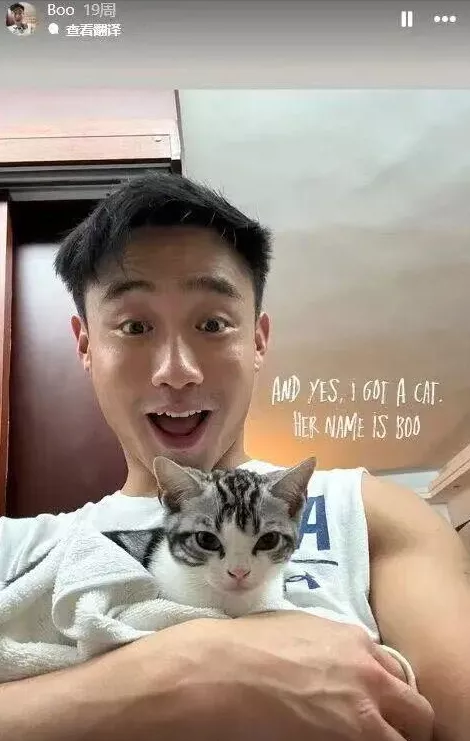 到了去年11月,林俊贤在社交平台晒出一张抱着猫的照片。眼尖的粉丝一眼认出,Boo不就是阿Sa的爱猫吗?