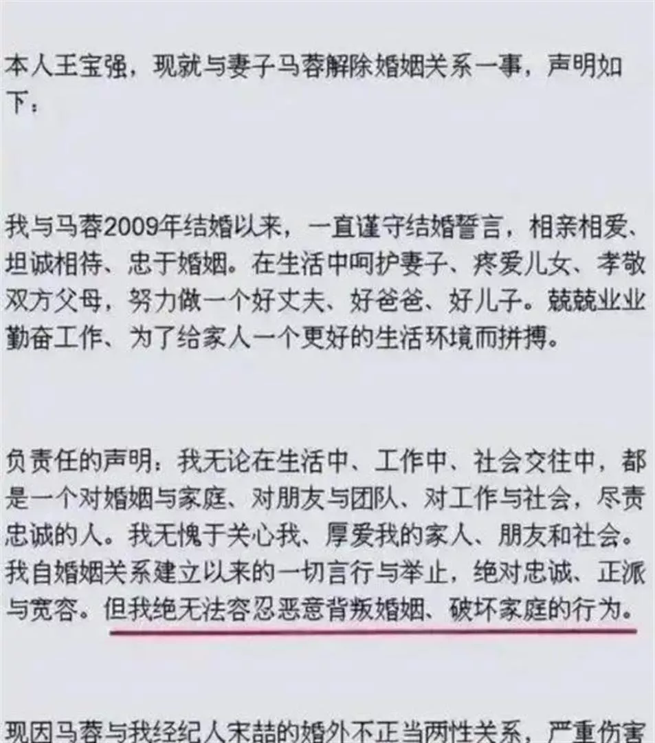 2016年8月14日凌晨,王宝强的那份离婚声明炸翻了整个网络,直接点名马蓉与宋喆存在不正当关系,并宣布解除宋喆的经纪人职务。