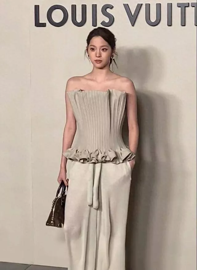 在这次LV活动中,她身着LV 2026春夏系列,抹胸上衣搭阔腿裤,拎经典老花包,尽显优雅大小姐范儿。