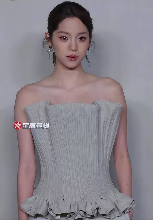 浅灰色抹胸上衣完美勾勒出肩颈线条,直角肩搭配修长脖颈,清冷又舒展的仪态美得毫不费力。