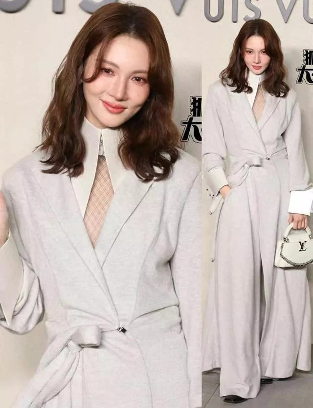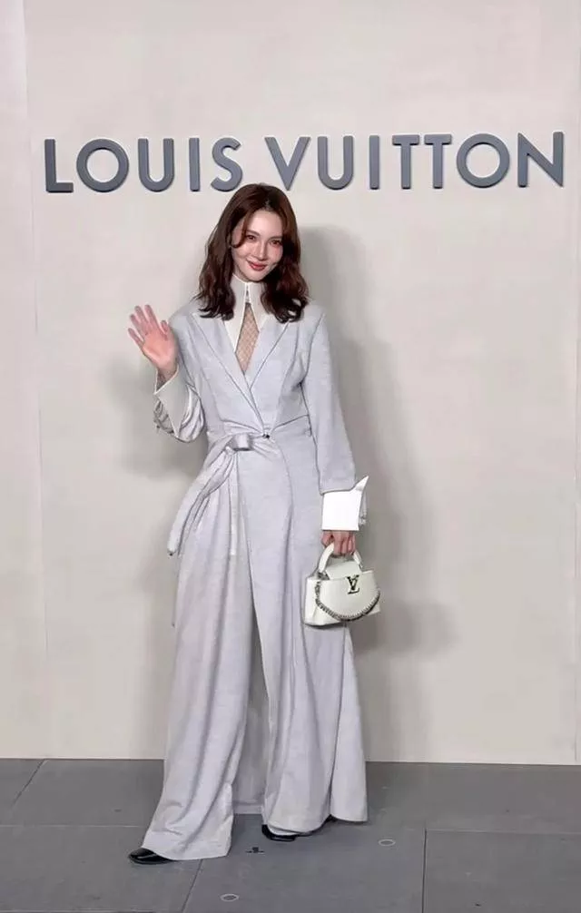 造型更是精准踩在高级感上,不管是浅灰西装连体裤的飒爽知性,还是束腰风衣的温婉大气,都能把LV的设计精髓与自身气质完美融合。