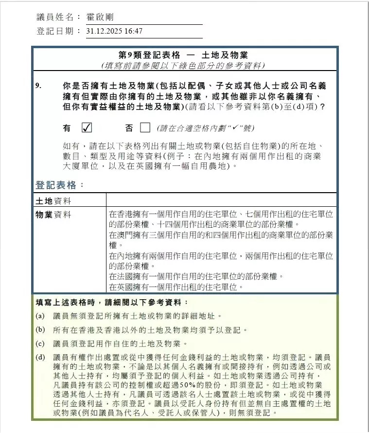 近日,霍启刚作为新任香港立法会议员,首次公开了自己个人名下的财产。