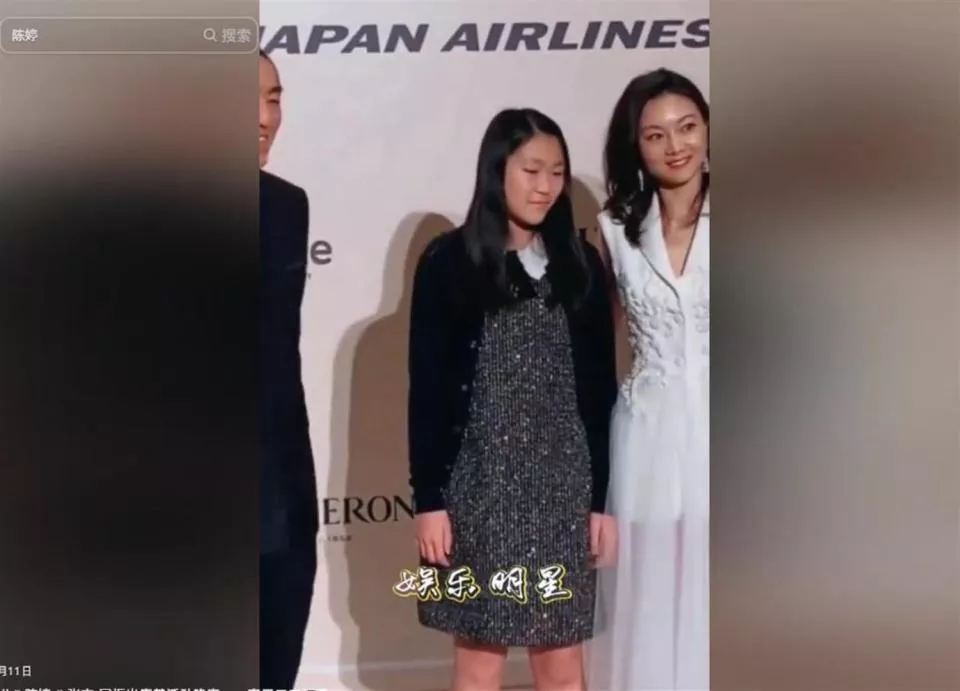 陈婷陪着一身礼服的女儿亮相,从容淡定。