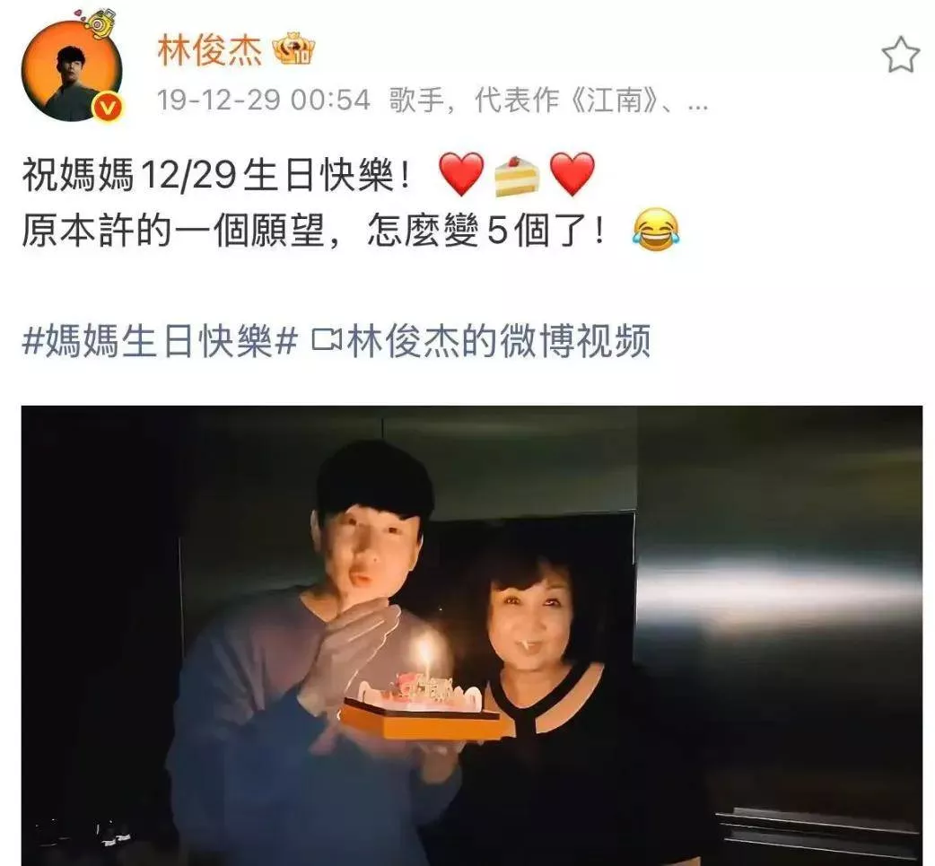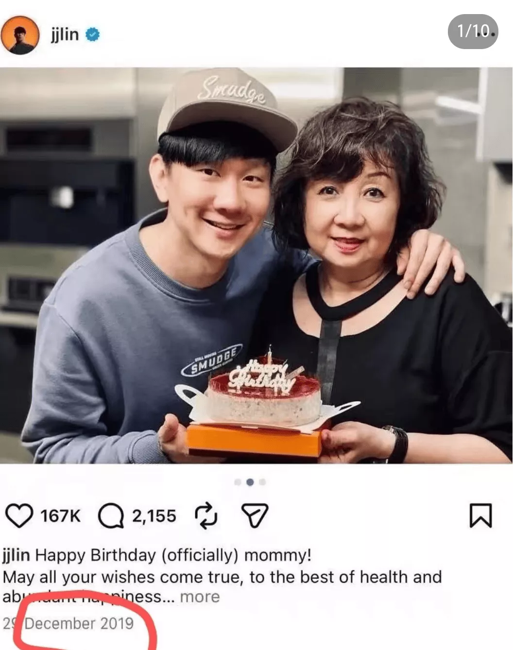 林俊杰多年来一直对外表示单身,2019年为妈妈庆生,晒的照片也都是自己和妈妈的两人合照,mida未出现在镜头,但从母子衣着造型和蛋糕造型能看出就是同一天。