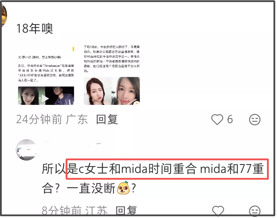 当滤镜一点一点碎掉的时候,粉丝们也忍不住扒了林俊杰恋爱时间线,发现多段感情都存在重合劈腿的可能。拿七七和mida来说,网传七七和林俊杰是2023年2月认识,而他3月还和mida贴脸,再加上mida骂劈腿,时间线确实有重合。
