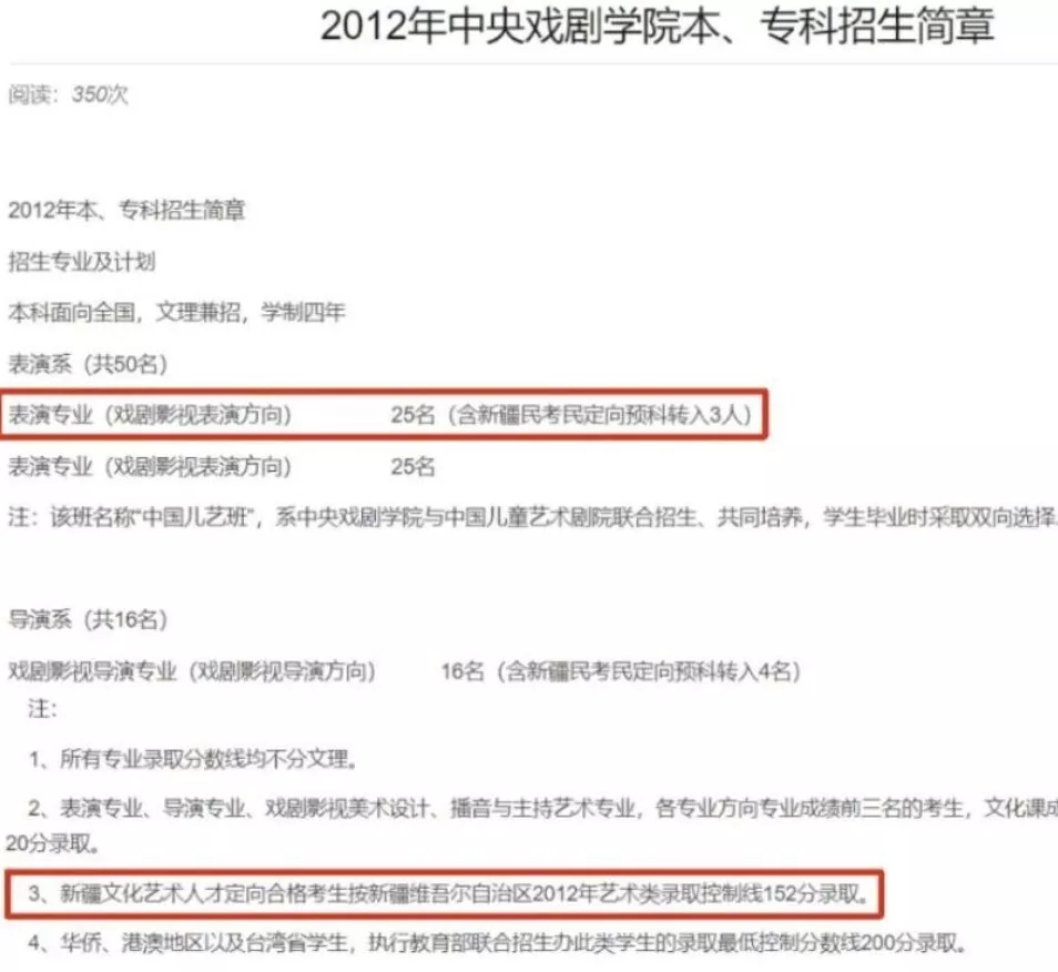 很快,有网友翻到了2012年中戏的招生简章。
