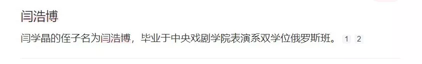 紧接着又有网友爆料,说闫学晶有个侄子叫闫浩博,竟然也是中戏毕业。